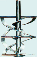 在有挡板时可自浆叶为界,形成上、下两个循环流。斜叶的兼有径向流和轴向流,圆盘涡轮叶轮在其圆盘上下的液体混合不如开启涡轮。 |